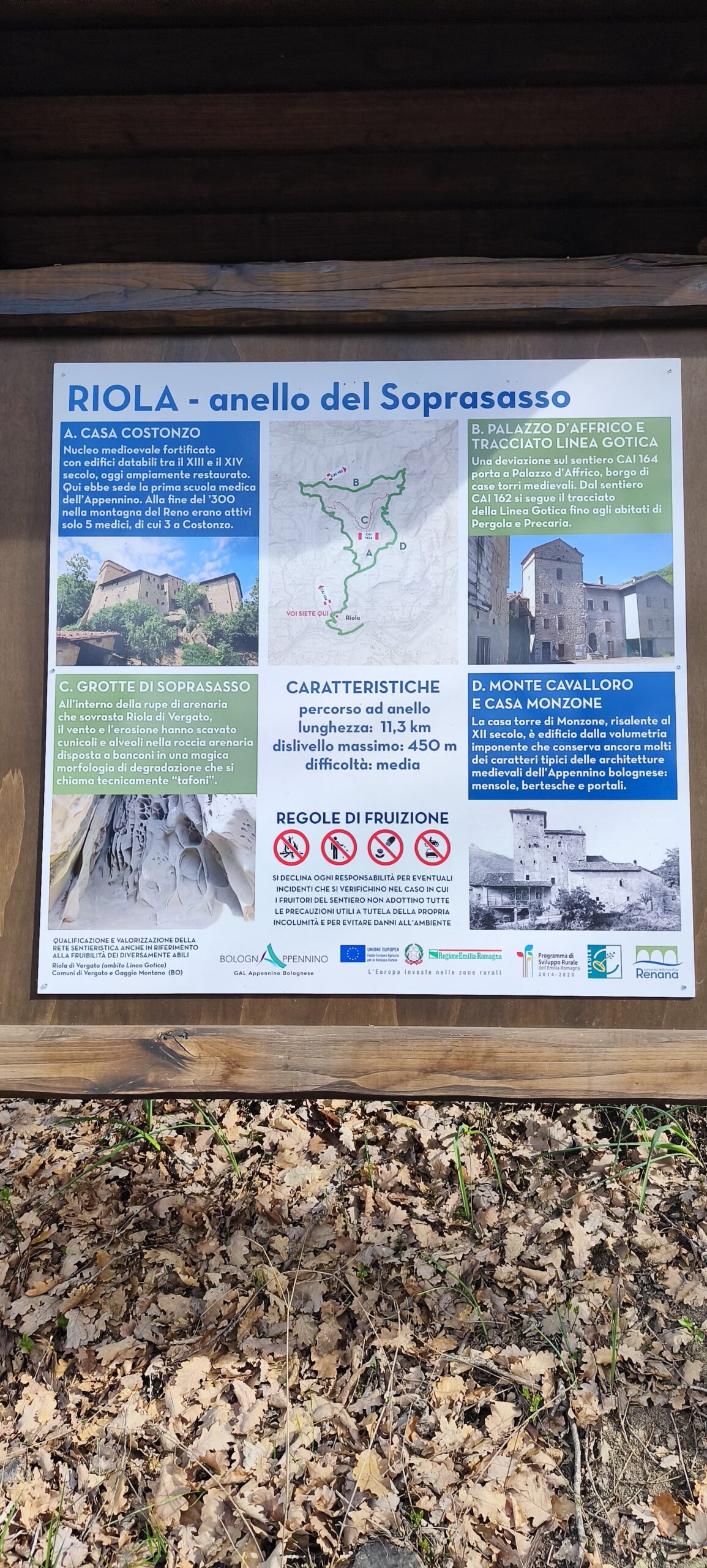 Fra eriche, gigli, ginepri e pungitopi scorgeremo dall’alto il profilo della Rocchetta Mattei, sito geologico di straordinaria bellezza che ci offrirà incantevoli prospettive e paesaggi mozzafiato.